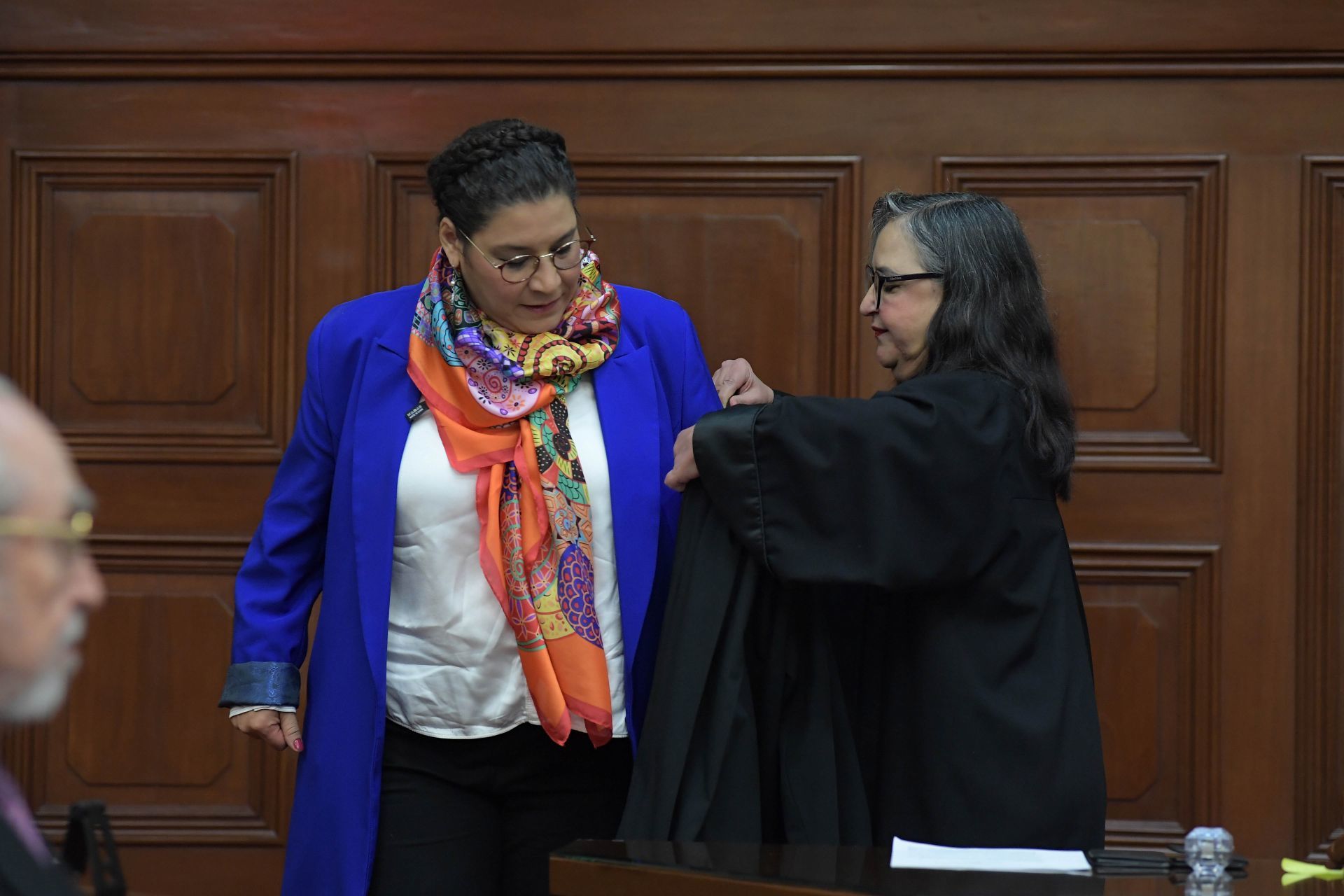 El 4 de enero de 2024, Lenia Batres recibió la toga de Ministra y el abrazo de la Ministra presidenta Norma Piña frente a sus ministros pares, los magistrados del Tribunal Electoral e integrantes del Consejo de la Judicatura.