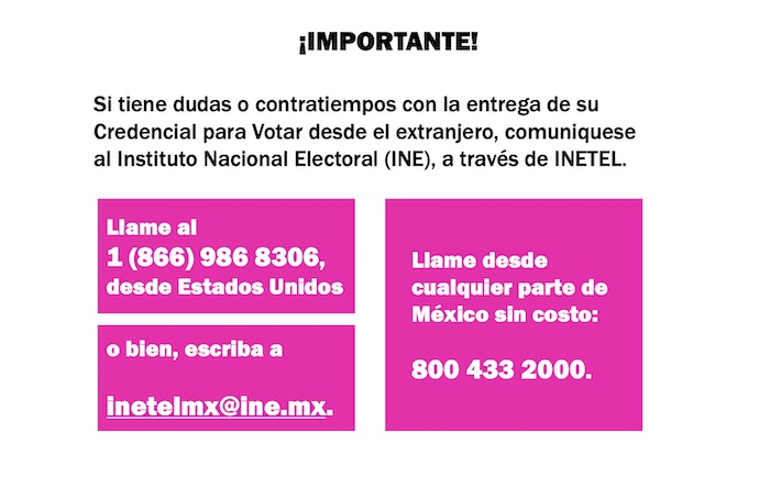 “Si aún no cuentas con tu credencial para votar, aún estás a tiempo de tramitarla y recibirla a tiempo para registrarte. Este sábado, 13 de enero, todas las embajadas y consulados de México en el exterior llevarán a cabo una jornada especial de credencialización donde podrás tramitar tu credencial para votar de manera gratuita, en tan solo unos minutos y sin necesidad de realizar una cita previa”, señala el comunicado oficial de la Secretaría de Relaciones Exteriores de México.