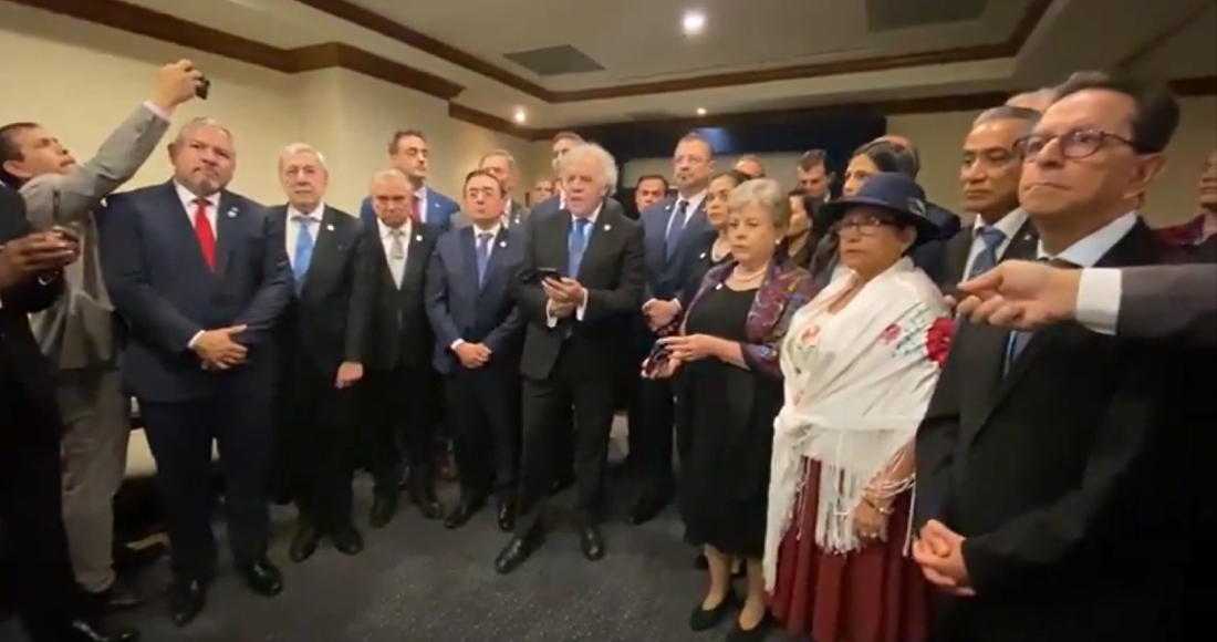 Luis Almagro junto a representantes de delegaciones internacionales, hacen un llamado al Congreso de la República, para entregar el poder como lo dice la constitución. ⬇️#LuisAlmagro #Representantes #Delegaciones #Internacionales pic.twitter.com/jZpATCFEuK