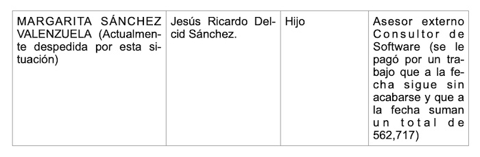 Sumado a lo anterior, se realizaron contrataciones que resultan ser parientes directos de su personal de confianza, por ejemplo: