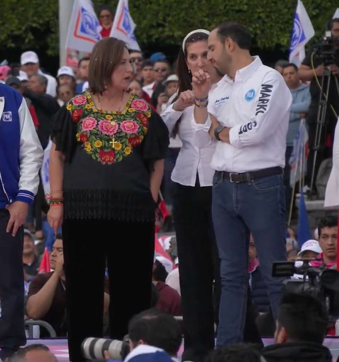 En el Bajío del país, Xóchitl Gálvez sólo estuvo acompañada del dirigente de su partido, Marko Cortés Mendoza, a quien ella mismo tuvo que reprobar en días pasados por haber revelado en redes sociales un acuerdo de reparto de candidaturas y posiciones en órganos autónomos en Coahuila, que el PRI desconoció, un episodio que rompió la alianza en esa entidad.