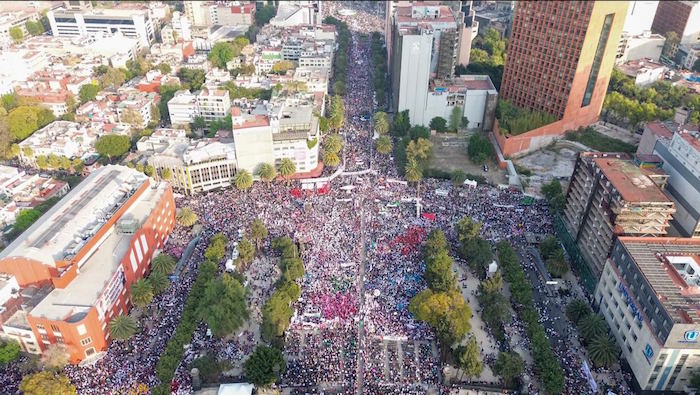 El acto de Sheinbaum desde las alturas. Foto: Especial.