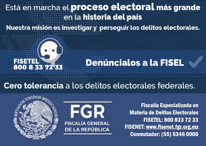 A la Fiscalía Especializada en Materia de Delitos Electorales corresponde aplicar la Ley General en Materia de Delitos Electorales, que en su artículo 4 advierte: “El Ministerio Público, en todos los casos, procederá de oficio con el inicio de las investigaciones por los delitos previstos en esta Ley”. Es decir que, aún sin que medie denuncia previa, al tener conocimiento de algún delito electoral, la Fiscalía está obligada a actuar para investigar y sancionar.