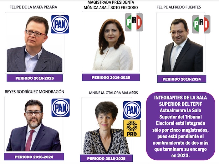 Felipe Alfredo Fuentes Barrera y Reyes Rodríguez Mondragón, magistrados electos para permanecer hasta 2022, durarían en sus tareas hasta el 31 de octubre de 2024. En tanto que Felipe de la Mata Pizaña, Mónica Aralí Soto Fregoso y Janine Madeline Otálora Malassís, ejercerán su encargo en los términos de la elección realizada por el Senado el 20 de octubre del 2016, es decir, hasta el 31 de octubre de 2025.