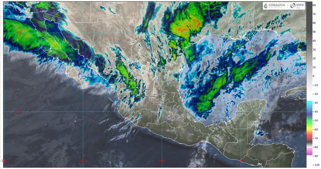 Por la mañana, se pronostica ambiente gélido en sierras de Baja California, Chihuahua, Durango y Sonora; y de frío a muy frío con heladas sobre entidades del noroeste, norte, noreste, occidente, centro y oriente de México.