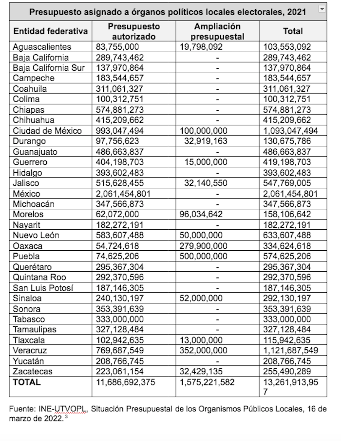 La propuesta de Reforma Electoral del Presidente critica el sostenimiento de la estructura burocrática de los partidos durante tiempos no electorales porque “nunca ha terminado de justificarse socialmente, dada la proliferación de élites partidistas ajenas al interés público y representatividad ciudadana”. Expone en ese sentido los partidos políticos fueron la institución pública más desacreditada, entre otras razones por el costo económico que significan para la sociedad mexicana en la última Encuesta Cívica realizada por el Instituto Nacional de Estadística y Geografía (INEGI), en 2020.