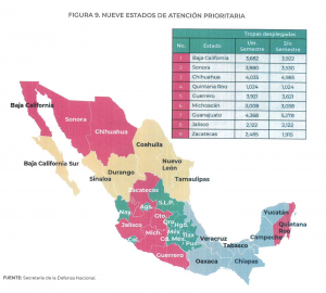 Este segundo informe también da cuenta de la presencia de la Fuerza Armada Permanente en todo el territorio nacional, con el despliegue de 57 mil 867 elementos militares y 20 mil 327 efectivos navales que apoyaron a las autoridades civiles en el combate a la delincuencia organizada y en el reforzamiento de la seguridad en las regiones con los mayores índices de violencia en el país.