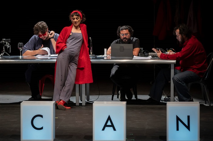 "No esperen una obra de teatro convencional, es una experiencia escénica en la que confluyen muchos lenguajes del mundo audiovisual, de las artes escénicas, del arte conceptual también y hay un montón de líneas de planos estéticos como conceptuales todo alrededor de temas muy delicados, espinosos y confusos para nuestros tiempos como lo son la cultura de la cancelación, la violencia, específicamente la violencia contra las mujeres el interior del arte", dijo Fernando Bonilla en entrevista a SinEmbargo.