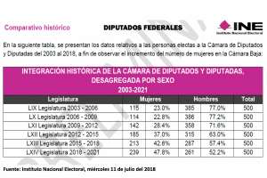 Seis años después, Josefina Vázquez Mota, obtuvo el mejor porcentaje para una mujer en unos comicios federales al sumar 25.39 por ciento de los votos. Por último, en 2018, Margarita Zavala Gómez del Campo participaría como candidata independiente, pero el 16 de mayo de ese año renunció a la contienda, al sumar, en promedio, en las encuestas, apenas el 5 por ciento de los votos potenciales.