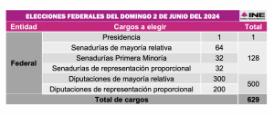 El paquete que estará en disputa incluye la Presidencia de la República; 64 senadores de Mayoría Relativa; 32 senadores de Primera Minoría; 32 senadurías de Representación Proporcional; 300 diputados de Mayoría Relativa y 200 de Representación Proporcional.