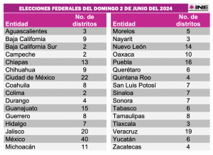 Estado de México, con 40 distritos electorales; Ciudad de México, con 22; Jalisco con 20 y Veracruz, con 19, son las entidades que más diputados federales aportan al Congreso de la Unión.
