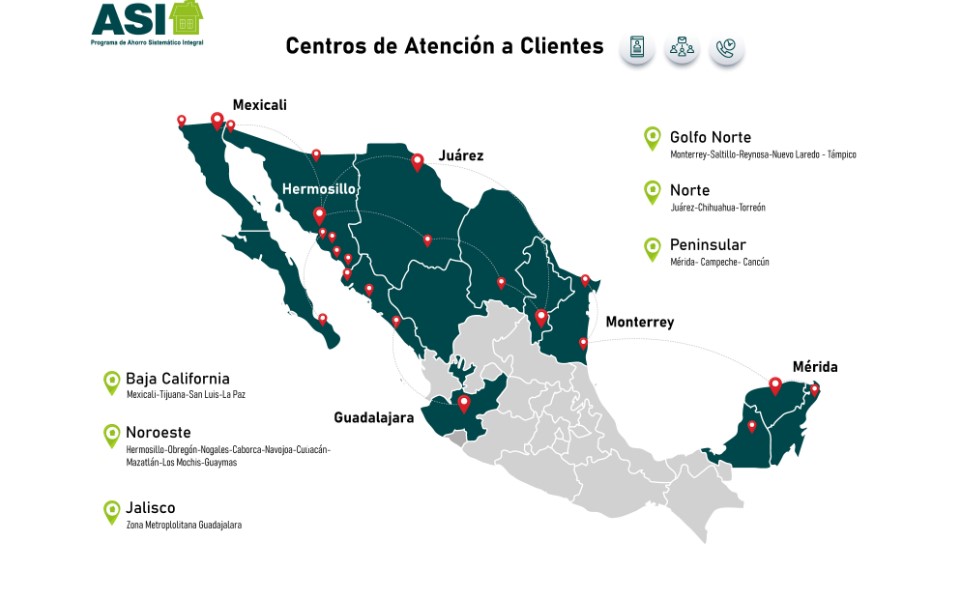 Ahorro Sistemático Integral tiene cobertura en seis regiones del país: Golfo Norte (Monterrey, Reynosa, Nuevo Laredo, Tampico), Norte (Juárez, Chihuahua, Torreón), Peninsular (Mérida, Campeche, Cancún), Baja California (Mexicali, Tijuana, San Luis, La Paz), Noroeste (Hermosillo, Obregón, Nogales, Caborca, Navojoa, Culiacán, Mazatlán, Los Mochis, Guaymas) y Jalisco (Guadalajara).