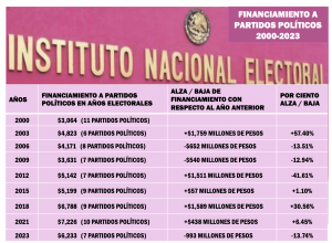 Ciudad de México, 19 de febrero (SinEmbargo).- Una reducción del 50 por ciento en el financiamiento a los partidos políticos es lo que propone la iniciativa de reforma constitucional que el Presidente López Obrador envió al Congreso de la Unión el pasado lunes 5 de febrero del 2024, que tomando como referencia lo que esas organizaciones, presuntamente de ciudadanos, gastarán durante 2024, representaría más de 6 mil millones de pesos de ahorro.