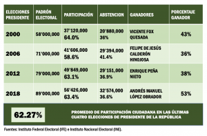 Veamos un ejemplo. Si el próximo domingo 2 de junio del 2024 votará el 62.27% de quienes están actualmente en la Lista Nominal de Electores, que hasta el corte del jueves 15 de febrero del 2024 tenía 98 millones 622 mil 905 ciudadanos inscritos, acudirían a las urnas: 61’412,482 ciudadanos.