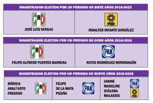 Los actuales integrantes de la Sala Superior del Tribunal Electoral del Poder Judicial de la Federación han sido cuestionados desde el día de su nombramiento. De cuates y cuotas fue la fórmula que se impuso el martes 18 de octubre del 2016, cuando el PRI, el PAN y el PRD acordaron, en el Senado de la República, quienes serían los siete nuevos magistrados electorales, designados el jueves 20 de octubre del 2016 durante una sesión ordinaria. De acuerdo con fuentes de la Junta de Coordinación Política, citadas por el periódico Reforma, las tres bancadas determinaron que, de las siete posiciones del Tribunal Electoral federal, tres serían definidas por el PRI, dos por el PAN, una por el PRD y una más por acuerdo de todas las fuerzas políticas.