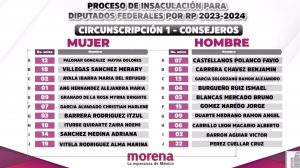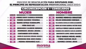 En el caso de los consejeros elegidos para las circunscripción 4, salieron elegidos en la tómbola: Gabriela Georgina Jiménez Godoy; Yesenia Torres Ramírez; Guadalupe Ramos Sotelo; Luz Vera Díaz; Berenice Hernández Calderón; Jesusa Jesusa Rodríguez; Giselle Santander Soto; Susana Araceli, Angelle Quesada; Jesús María Rodríguez Ruiz y Adeli hombre Medina Hernández.  En los hombres fueron elegidos Sebastián Ramírez Mendoza; Enrique Rolón Hernández; Diego Alejandro Villanueva González; Victor Hugo Romo de Vivar Guerra; Carlos Alonso Castillo Perez; Jorge Eduardo Navarrete López; Miguel Ángel Tello Vargas; Julio Pérez Guzmán y Jesús Ramírez Cuevas.