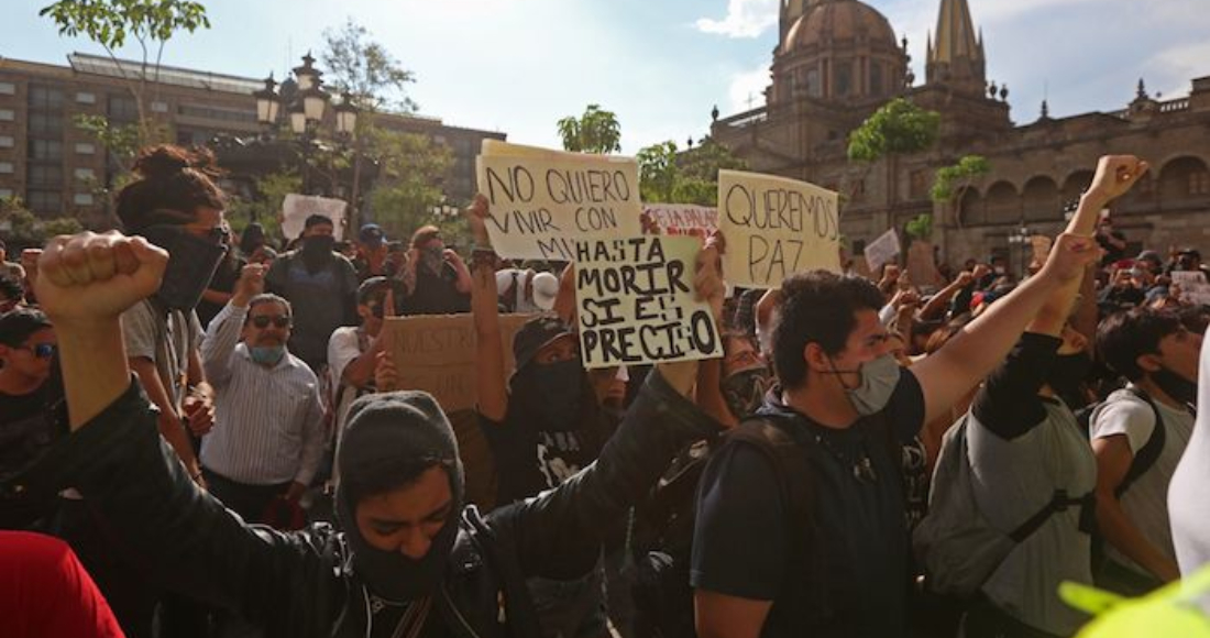 Esa jornada de protestas, del 5 de junio, se caracterizó porque policías vestidos de civil y hombres con el rostro cubierto a bordo de camionetas sin logotipo ni placas detuvieron a decenas de personas en Guadalajara, a quienes también golpearon. Ellas y ellos, así como organizaciones civiles denunciaron desde entonces que se trató de desapariciones forzadas.
