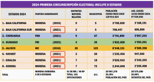 Además, no hay perder de vista que en los comicios del domingo 2 de junio del 2024 también se competirá en esta región por 61 diputaciones de Mayoría Relativa. En los cinco estados que gobierna Morena hay 28 distritos electorales de Mayoría Relativa. Hasta hace tres años eran 27 distritos electorales y aumentó a 28 porque Baja California incrementó su población y se le acreditó un distrito más para sumar 9.