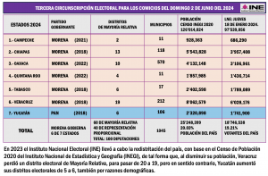 Ciudad de México, 28 de febrero (SinEmbargo).- Morena tendrá un desempeño relevante y muy probablemente arrasará, junto con sus aliados del Partido del Trabajo (PT) y del Partido Verde, en la Tercera Circunscripción Electoral del país, durante los comicios del domingo 2 de junio del 2024, de tal forma que podrían llevarse hasta 29 diputaciones de Representación Proporcional y 57 de Mayoría Relativa, para un total de 86 curules, de las 100 que estarán en disputa en esa región del sureste mexicano, en donde el partido guinda gobierna seis de las siete entidades que la integran.
