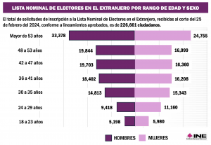 Ciudad de México, 6 de marzo (SinEmbargo).- Fueron finalmente 226 mil 661 ciudadanos mexicanos residentes en el extranjero los que se inscribieron para participar en los comicios del domingo 2 de junio del 2024, cuando votaremos en México por presidente de la República, senadores y diputados federales.
