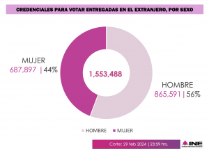 Hay por lo menos 687 mil mujeres y 865 mil varones que tienen credencial electoral vigente y viven fuera de México, para una suma total de 1 millón 553 mil 488 ciudadanos. Por lo tanto, los 226 mil 661 ciudadanos mexicanos que finalmente se inscribieron para votar el domingo 2 de junio representan apenas el 14.59 por ciento de quienes podrían sufragar desde el extranjero. Pese a todo, la participación de votantes desde el exterior establecerá una nueva marca.