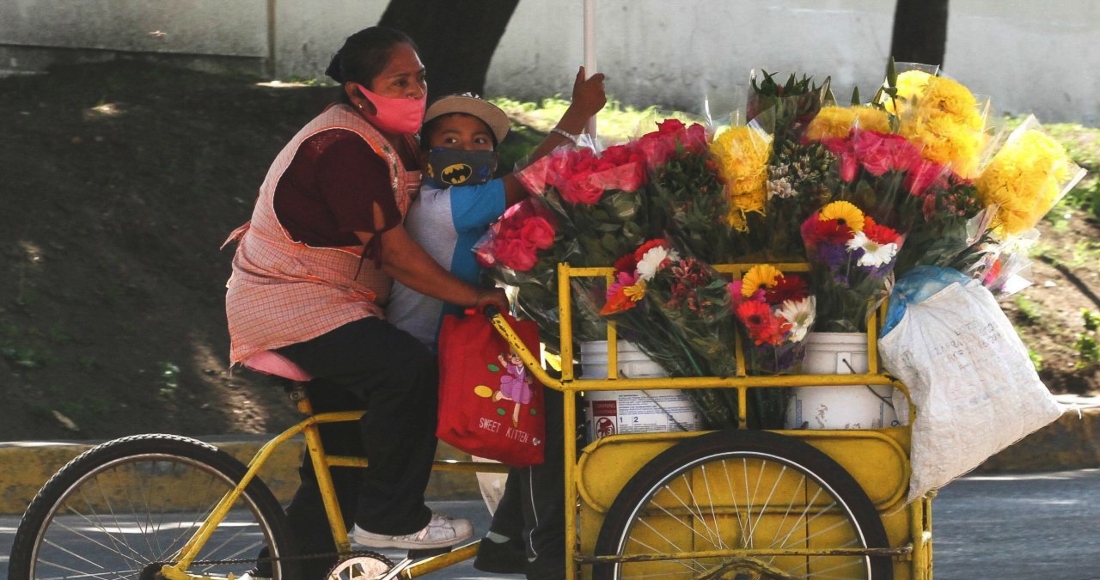 mujer-vendedora-flores-niño-bicicleta-triciclo