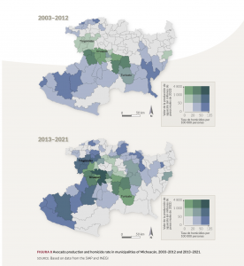 Y es que, en las últimas décadas, el crecimiento exponencial del mercado mexicano del aguacate ha ido acompañado de crecientes niveles de violencia.