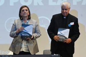 “Haré todas estas propuestas que han salido de la sociedad civil, no tengo ninguna duda. Estoy muy contenta de estar aquí con ustedes yo estoy convencida que las iglesias y muy particularmente la Católica a la cual pertenezco juegan un papel fundamental para la construcción de la paz reconozco y valoro el gran trabajo que hace la Iglesia católica en México a través de sus obispos párrocos religiosos monjas y catequistas en todo el país” refirió la candidata.