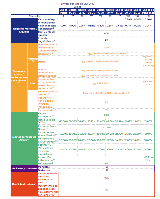 A través de un régimen de inversión establecido por la Comisión Nacional del Sistema de Ahorro para el Retiro (Consar) se señala que las inversiones deben impulsar cinco aspectos:
