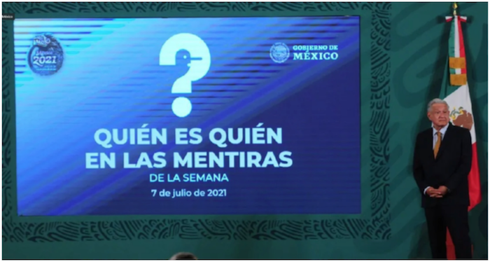segmento “Quién es Quién en Las Mentiras”, de la conferencia matutina del Presidente Andrés Manuel López Obrador se realizó una adquisición indebida de tiempos en radio y televisión en favor del partido político Morena. Foto: SinEmbargo