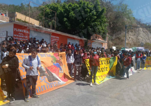 En la manifestación participan integrantes de la Federación de Estudiantes Campesinos Socialistas de México (FECSM), de la Coordinadora Estatal de los Trabajadores de la Educación Guerrero (CETEG) y del Frente Unido de Normales Públicas del Estado de Guerrero (FUNPEG).