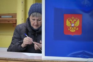 Mientras las personas se presentaban el domingo a votar, las autoridades rusas dijeron que Ucrania lanzó una nueva ola de ataques masivos contra Rusia, los cuales cobraron dos vidas.