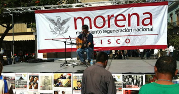 En Guadalajara, al menos 300 integrantes del Movimiento Regeneración Nacional (MORENA) se manifestaron en la Plaza Universidad de Guadalajara en contra del Presidente de la República, Enrique Peña Nieto.