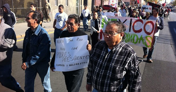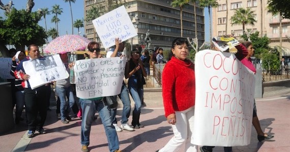 Entre las protestas indicaban que el nuevo gobierno encabezado por Peña Nieto apoyaría la privatización de terrenos mexicanos para la supuesta llegada de empresas extranjeras y con la nueva reforma laboral se explotarían los derechos de los trabajadores. "Lo único que hacen estas empresas es explotar a los trabajadores pagándoles un salario miserable y violando sus derechos laborales, además suelen evadir impuestos que el gobierno aprueba", indicó.