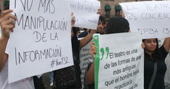 Organizaciones sociales, integrantes de Morena y del movimiento #YoSoy132 se manifestaron pacíficamente en la Plaza Melchor Ocampo contra la "imposición de Peña Nieto".