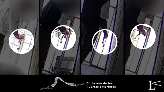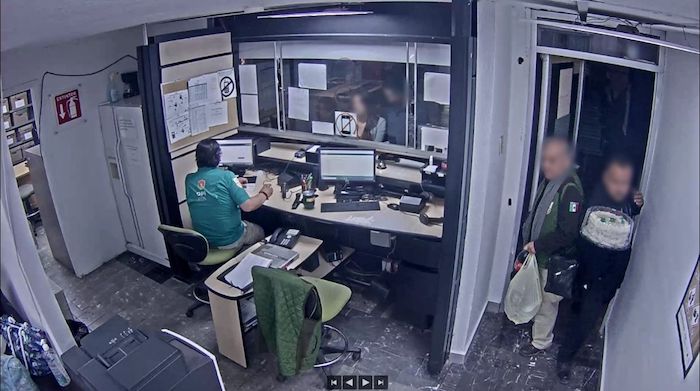 De acuerdo con las imágenes analizadas, en el transcurso del día se puede ver tanto a los agentes del INM como a los guardias de seguridad manejar las llaves para abrir y cerrar la puerta de la celda y la puerta de madera con la puerta metálica que estaba al lado de la habitación y conduce al estacionamiento del edificio.