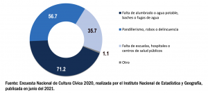 Lo que más le preocupa a la gente, en toda la geografía del país, son los asuntos vinculados a su realidad inmediata: la falta de servicios básicos, como alumbrado público, agua potable y pavimento en las calles de sus barrios, colonias o comunidades de acuerdo con la Encuesta Nacional de Cultura Cívica, realizada por el Instituto Nacional de Estadística y Geografía (INEGI).