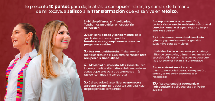 Durante la campaña electoral, tanto Claudia Delgadillo, de Morena, como Pablo Lemus, de Movimiento Ciudadano, han abierto sus respectivas páginas web o portales en las que presentan las diversas propuestas respecto a estos temas . Sin embargo, la especificidad de las mismas varía entre los candidatos.