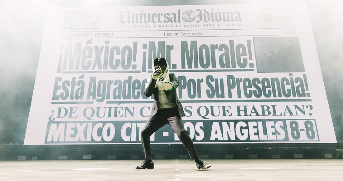 A lo largo de hora y media –lo que pareció una noche completa–, con la luna llena y decenas de miles como coro, el cantante trajo a Compton, su barrio natal en California, a los pies de la Ciudad de México. Entonó sus principales himnos: de "DNA" y "Loyalty" en Damn, hasta "Bitch, Don't Kill My Vibe", de Good Kid, MAAD City, el disco que lo llevó a la cumbre; desde "King Kunta", de To Pimp a Butterfly, que lo consagró como el mejor de su generación, hasta "United in grief", una de las canciones de su último álbum, Mr. Morale & The Big Steppers.