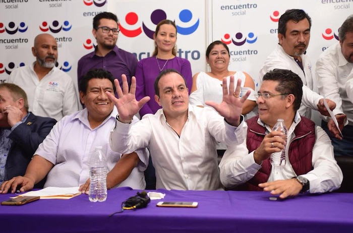 La coalición que pidió al Congreso no aprobarle la licencia es opositora a Morena y a Encuentro Social, que fue el partido conservador que lo invitó en agosto de 2017 a ser su candidato a la gubernatura tras ser Alcalde de Cuernavaca (2016-2018). Pero en enero de 2023, el dirigente del PES Hugo Eric Flores rompió con él por "mentiroso", por amenazarlo y por hacer "negocios sucios" desde la casa de Gobierno.