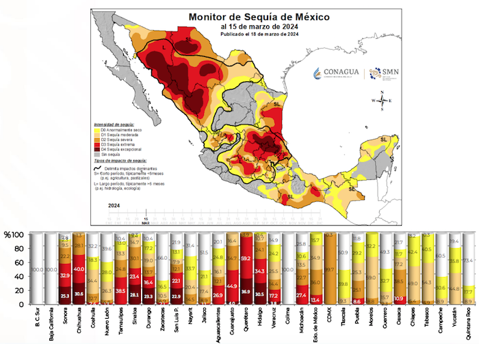 "Guanajuato está en segundo lugar de estrés hídrico con un índice de 4.97. Estamos a días de llegar al Día Cero. ¿Qué es lo que estamos haciendo por parte de la secretaría? La precipitación media que teníamos en Guanajuato hace aproximadamente 50 años era del orden de 800 milímetros. Ahorita, en estas fechas, la precipitación media es de menos de 500 milímetros. Tenemos en este lapso un déficit de 300 milímetros, una cantidad importantísima”.