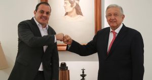 El Gobernador de Morelos Cuauhtémoc Blanco con el Presidente Andrés Manuel López Obrador. Foto: Facebook.