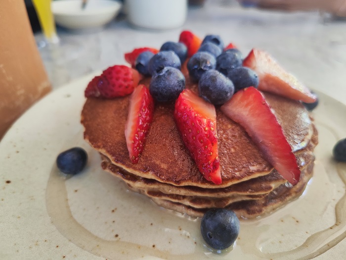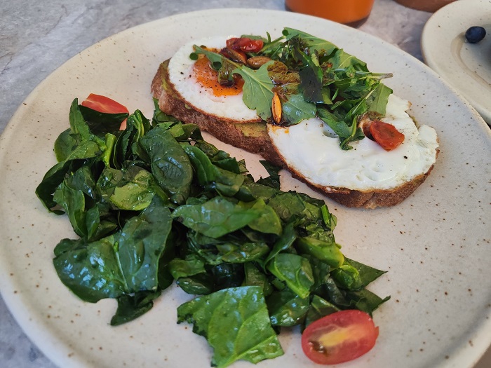 ¿Qué pedir? Una gran opción son los hotcakes de harina de avena con topping de fresa, berries y miel de agave; los chilaquiles healty son otra opción, estos se preparan con totopos horneados y bañados en salsa, queso panela y crema orgánica; otro imperdible es el Avocado egg toast que lleva aguacate, huevo estrellado y ensalada de la casa.