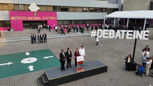 Ya estamos en el @INEMexico acompañando a nuestra próxima Presidenta, la Dra. @Claudiashein en el primer debate presidencial.