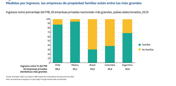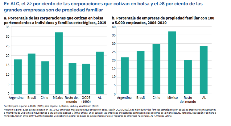 En el caso de México, expone el documento, el 95 por ciento de las 50 empresas más grandes están en poder de las familias más ricas del país y sus ingresos equivalen al 25.1 por ciento del PIB, como se muestra en la siguiente gráfica.