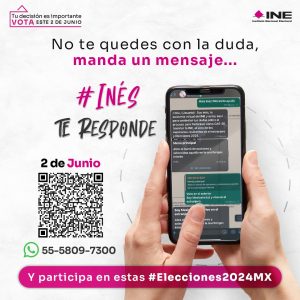 Ciudad de México, 17 de abril (SinEmbargo).- Por primera vez, el Instituto Nacional Electoral (INE) utilizará a “Inés”, su asistente virtual en WhatsApp, para que la ciudadanía pueda reportar posibles noticias falsas o imprecisas sobre las elecciones 2024 y también podrán recibir información verificada respecto al próximo proceso electoral.