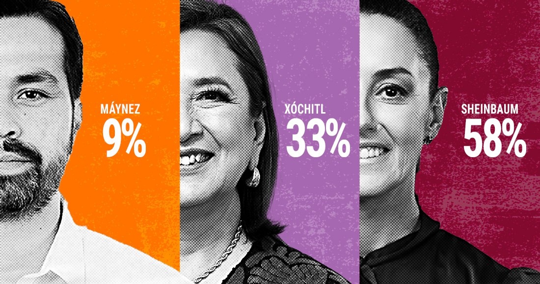 De acuerdo con la medición, Claudia Sheinbaum Pardo, candidata presidencial por el oficialismo, amplió su ventaja a 29 puntos, mientras que Xóchitl Gálvez, quien representa a los partidos Acción Nacional (PAN), Revolucionario Institucional (PRI) y de la Revolución Democrática (PRD), bajó un punto porcentual respecto a la primera medición. Lo mismo ocurrió con Álvarez Máynez.