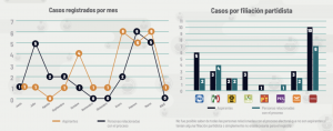 Aunque, según el mismo reporte, los meses con mayor cantidad de asesinatos registrados han sido julio, octubre, enero, febrero y marzo, los cuales ya han pasado en este proceso. Sin embargo, la organización alertó por una "espiral de violencia" en los últimos tres meses, con un incremento de los casos de violencia electoral, que ha crecido un 150 por ciento, que "coincide con la conclusión de las precampañas y el registro de candidaturas a nivel local".