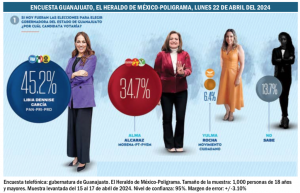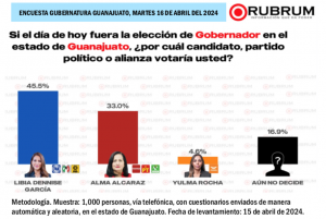 Ciudad de México, 25 de abril (SinEmbargo).- Pese a que no ha podido establecer una ventaja amplia que garantice la victoria en los comicios del domingo 2 de junio del 2024, la candidata de la coalición Fuerza y Corazón por Guanajuato, Libia Dennise García Muñoz Ledo, conserva la delantera en la contienda por la gubernatura, lo que podría prolongar la hegemonía del partido albiazul en esa emblemática entidad de la región de El Bajío, por un periodo de hasta 39 años.