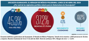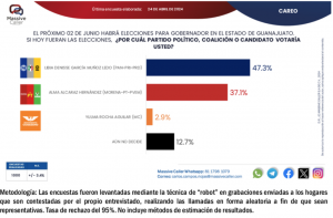 El 24 de abril del 2024, otra empresa que realiza encuestas telefónicas mediante el uso de robots, llamada Massive Caller, le atribuyó a la candidata del PAN, García Muñoz Ledo, un 47.3 por ciento de ventaja, sobre el 37.1 por ciento de la morenista Alcaraz Hernández.S
